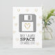 A silver floppy disc surrounded by gold hearts with the Valentine's message: "There's always space for more love." Back of the card reads "Happy Valentine's Day." Great for geeks, computer scientists, engineers and nostalgic computer lovers.