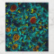 Desenho com fundo escuro semelhante a flores que foi submetida a diversos efeitos gráficos e ficou parecendo algo surreal que lembra algo de vidro de cor azul metálico e de partes douradas e que foram parcialmente trituradas.