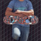 Flor virtual entalhada nas cores azul e salmão skateboard