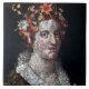 These works form a distinct category from his other productions. He was a conventional court painter of portraits for three Holy Roman emperors in Vienna and Prague, also producing religious subjects and, among other things, a series of coloured drawings of exotic animals in the imperial menagerie. He specialised in grotesque symbolical compositions of fruits, animals, landscapes, or various inanimate objects arranged into human forms. The still-life portraits were clearly partly intended as whimsical curiosities to amuse the court, but critics have speculated as the degree of serious engagement with Renaissance Neo-Platonism or other intellectual currents that they have. Quote:Wikipedia