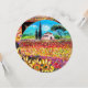 Tuscany landscape,vibrant,expressive beauty of Italian countryside and colourful flower fields in bright yellow orange,pink,fuchsia,purple,red,green,black colours,beautiful Summer meadows,cypress and olive trees,rustic old farm house under the blue sky.Acrylic painting on canvas .