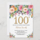 Floral 100th Birthday Invitation Gold Glitter