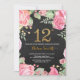 Floral 12th Birthday Invitation for Women. Watercolor Botanical Floral Flower. Gold Glitter. Chalkboard Background. Pink Peonies Floral Flowers. Kids Girl Lady Birthday. For further customisation, please click the "Customise it" button and use our design tool to modify this template.