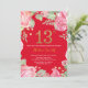 Floral 13th Birthday Invitation for Women. Watercolor Botanical Floral Flower. Gold Glitter. Red Background. Pink Peonies Floral Flowers. Kids Girl Lady Birthday. For further customisation, please click the "Customise it" button and use our design tool to modify this template.