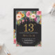 Floral 13th Birthday Invitation for Women. Watercolor Floral Flower. Black and Gold Glitter. Pink, Yellow, Orange, Purple Flower. Kids Birthday. For Girl Lady Teen Teenage. For further customisation, please click the "Customise it" button and use our design tool to modify this template.