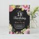 Floral 18th Birthday Invitation for Women. Watercolor Floral, Pink, black chalkboard background. 13th 16th 18th 21st 30th 40th 50th 60th 70th 80th 90th 100th. Any Age. For further customisation, please click the "Customise it" button and use our design tool to modify this template.