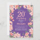 Floral 20th Birthday Pink Flowers Purple Violet Invitation