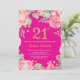 Floral 21st Birthday Gold Glitter and Hot Pink Invitation