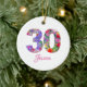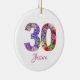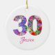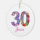 Celebrate a milestone birthday with a splash of colour! This custom white ceramicornament is adorned with vibrant floral patterns forming the number '30', making it a perfect keepsake for anyone turning the big 3-0. The name is elegantly scripted below, emphasizing the personal touch. Personalise with the name of your choice. Designed with love.