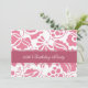 Custom 35th Birthday party invitations in elegant honeysuckle pink and white floral pattern. Add your name and party details for a unique and stylish birthday party invitation.