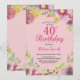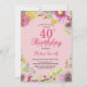 Floral 40th Birthday Invitation for Women Pink