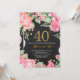 Floral 40th Birthday Invitation Gold Glitter