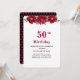 Floral 50th, 60th Birthday on Burgundy & Black Invitation