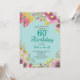 Floral 60th Birthday Invitation for Women. Watercolor Floral, Teal Aqua Turquoise Background. For further customisation, please click the "Customise it" button and use our design tool to modify this template.