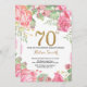 Floral 70th Birthday Invitation for Women. Watercolor Botanical Floral Flower. Gold Glitter. Pink Peonies Floral Flowers. Adult Birthday. For further customisation, please click the "Customise it" button and use our design tool to modify this template.
