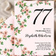 This pretty floral 77th birthday invitation is perfect for a nice party and will set a fun and celebratory tone. This design features pink blossoms on stems, and is a nice feminine choice for a special event to celebrate a milestone birthday. Customise for your own birthday year, and search for "77" in my shop to see coordinating designs.