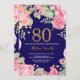 Floral 80th Birthday Gold Glitter Navy Blue Invitation