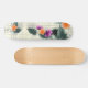 This skateboard deck showcases an elegant fusion of floral and abstract elements. Featuring vibrant flowers in orange, purple, and pink, set against a geometric grid and botanical leaf patterns, the design is both contemporary and captivating. The soft cream background complements the vivid hues, creating a balance of energy and sophistication. Perfect for skaters who appreciate stylish and artistic details, this deck brings a modern twist to nature-inspired aesthetics.