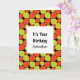 This easy to personalise birthday greeting card is embellished with an abstract flower petal or teardrop pattern inspired by similar Mid Century Modern motifs of the 1950's, 1960's and even into the early 1970's created in a retro contemporary colour scheme of citrus orange and green.