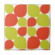This tile features an abstract flower petal or teardrop pattern in retro contemporary colours of vivid orange and green that is based on similar Mid Century Modern motifs of the 1950's, 1960's and even into the early 1970's.
