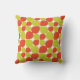 This pillow features an abstract flower petal or teardrop pattern is based on similar retro Mid Century Modern motifs of the 1950's, 1960's and even into the early 1970's. It is created in a contemporary colour scheme of citrus orange and green.