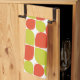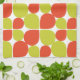This tiled abstract flower petal or teardrop pattern embellishing this kitchen towel is based on similar retro Mid Century Modern motifs of the 1950's, 1960's and even into the early 1970's. It is created in a contemporary colour scheme of citrus orange and green.