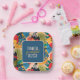 This modern paper plate features a bold abstract floral design in shades of green, blue, red and gold. Perfect for your next women's church lunch, conference, retreat or bible study! The copy "thankful grateful blessed" may be edited to make your special event unique. If you need help with coordinating items message Suzanne via Zazzle chat or email suzparada@gmail.com