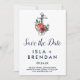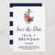 This floral anchor autumn save the date card is perfect for a nautical theme wedding. The design features a beautiful bouquet of burgundy, marsala and burnt orange fall flowers wrapped around a watercolor boat anchor.