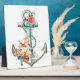 A plaque with colorful floral ship anchor with flowers. Nautical decor for girls.