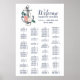 This floral anchor summer alphabetical seating chart poster is perfect for a nautical theme wedding. This sign can be used to organise your guests alphabetically or by table number. The design features a beautiful bouquet of blush pink and white summer flowers wrapped around a watercolor boat anchor. This wedding poster includes enough room for up to about 120 guests. Make room for more (or less) guests by clicking the "customise" button and decrease or increase the size of the font. In addition to the placement of each guest, personalise this sign with the names of the bride and groom and the wedding date.
