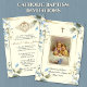 Personalise our beautiful traditional blue floral Catholic ivory baptism invitations with a beautiful line art drawing of the Holy Family, Jesus, Mary and St. Joseph. and the Guardian Angels with Baby on the front. All text and fonts can be modified.