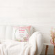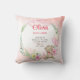 Floral arch teddy bear baby stats nursery pillow template. Cute teddy bear with a pink ribbon and pink balloons for girls baby shower.