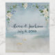 Nautical netting with blue and ivory floral arch design and starfish on a watercolor ocean background.