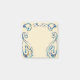 This exquisite notecard features a prominent, ornate border in the Art Nouveau style, chraacterised by its flowing, organic lines and stylised floral motifs. The border, rendered in shades of blue, green, and gold with a distressed or textured appearance, frames a central, lighter cream-coloured area designed for writing. The overall aesthetic evokes a vintage or classical feel, making it suitable for various occasions requiring a touch of elegance.