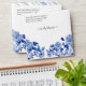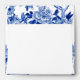 "Floral Asian Influence Navy Chinoiserie Square Wedding invitation envelope with return address, floral and bird pattern in navy blue and white inside." Elegant, hand painted artwork by internationally licensed artist, Audrey Jeanne Roberts, copyright.