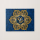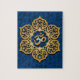Floral Aum Design, golden blue Jigsaw Puzzle