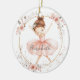 Pink floral Personalised script Ballerina Ceramic Ornament with beautiful watercolor pink florals.