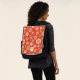 This boldly colourful flower power backpack bag is ready for your monogram. Repeating 60's style folk flower print is created in a bright palette of hot pink, white and orange red, with your monogram sharply accented, ready for you to edit with the click of a mouse.
