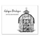 An antique shop business stamp with an image of a vintage barn.