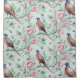 A charming shower curtain featuring colorful songbirds perched among blooming pink flowers and fresh green leaves on a soft mint background. A lovely choice for bird lovers, floral enthusiasts, and anyone who enjoys bright, artistic botanical patterns.