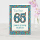 A pretty Age-specific Birthday Card for a Sixty-five-year-old Friend, with the number 65 and the border filled with a colourful retro floral pattern on a teal background. The floral pattern is part of the Posh & Painterly 'Granny Print' collection, from a hand-painted paper collage by Judy Adamson. This design will fit all Greeting Card sizes.