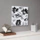 Floral, black and white square wall clock