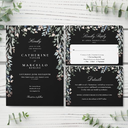 Black And White Floral Cascade Wedding SuiteDesigned by Thisisnotme Designs