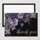 Dark Gothic Floral Wedding Thank You Card — a romantic and moody design perfect for a gothic chic celebration. The front features a mix of deep purple, dark gray, and black flowers and leaves over an off-white background with a black border. “Thank you” is written in elegant script on the front. On the back, the couple’s names and wedding date are displayed in classic serif fonts. Ideal for fall, winter, or gothic-inspired weddings.
