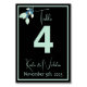 This is a floral design pastel mint green on black table card suitable for weddings or other parties.