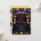 Colorful taco twosday second birthday party invitation featuring a decorative Mexican style floral elements, some taco's and a string of papel picado on a black background. This invitation design is sure to set the scene for a colorful girl's taco twosday 2nd birthday party.