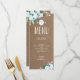 Customisable menu featuring blue watercolor flowers on a burlap background, perfect for any religious celebration.
