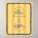 Line art blue floral illustrations and hand drawn scalloped border with blue text over yellow striped background.