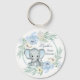 Blue Floral Elephant Baby Boy Shower Button Keychain - This design features a watercolor illustration of soft blue, grey and cream peonies, anemones and cute Baby Elephant.