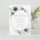 Floral Navy Blue Greenery Gold Wedding Save The Date Card. Elegant Blue Flowers Greenery Wedding Save the Date Card